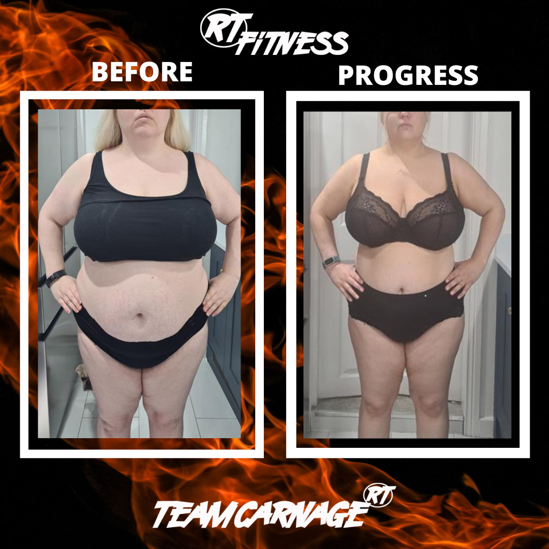 Leanne from Sunderland 37 years old Struggled to breath when she walked, multiple health issues causing overeating due to depression with a little call from the team she knew RT Fitness was the right place for her. Very anxious about her first session but the community took her in from day 1. Now 35lbs in the initial 90 days she's had the confidence to share these pics so that it may help others on their own journeys
